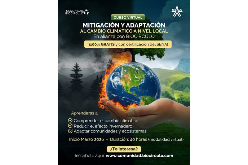 ¡Inscripciones abiertas! Aprende a mitigar y adaptarte al cambio climático desde tu territorio, fortaleciendo comunidades y ecosistemas locales. Inicio Marzo 2026.